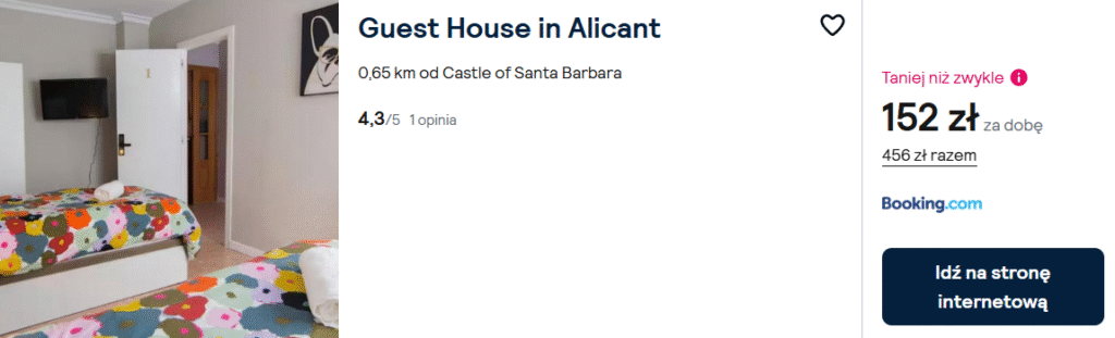 Bardzo wysoko oceniany tani Guest House w Alicante zarezerwujesz TUTAJ.