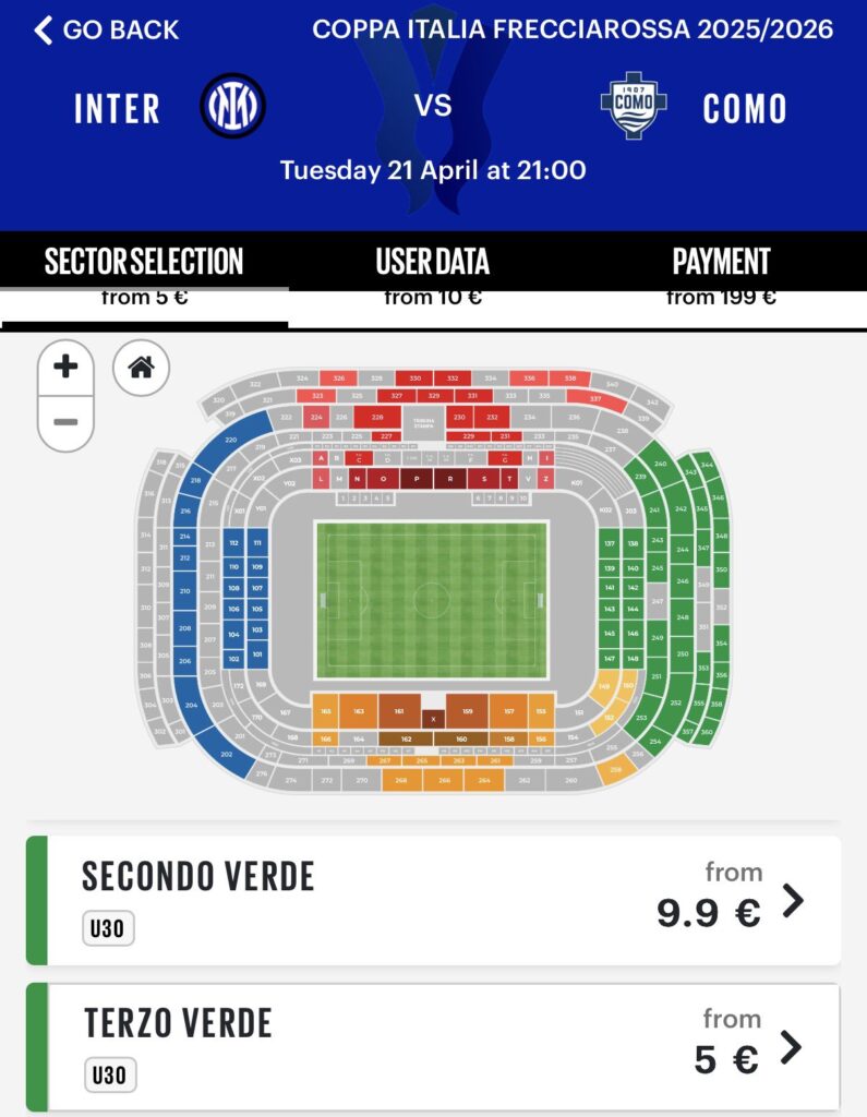 Wejściówki na mecz Interu można kupić bardzo łatwo, a bilety zaczynają się już od 5 euro. Kupić polecam tylko i wyłącznie TUTAJ.