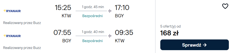 Katowice-Mediolan Bergamo (21-23.04) – 168 PLN