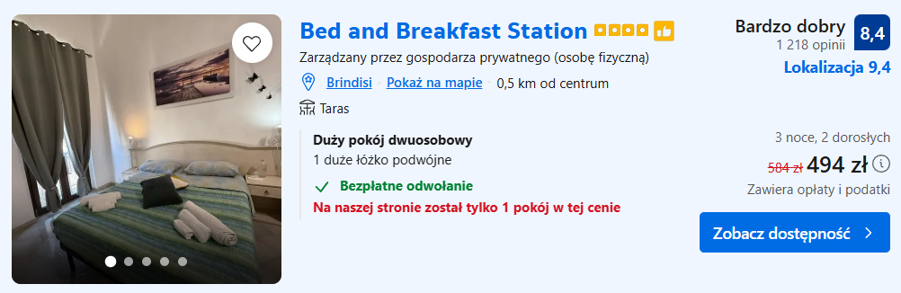 Bardzo fajny cenowo i wysoko oceniany hotel z pokojem dla 2 osób w centrum Brindisi zabukujesz TUTAJ.