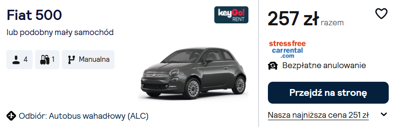 Niektóre lokalizacje najlepiej zwiedzać samochodem, a najtańszy wynajem znajdziesz TUTAJ. Dla przykłady 5-dniowy wynajem w Alicante to jedyne 236 PLN!