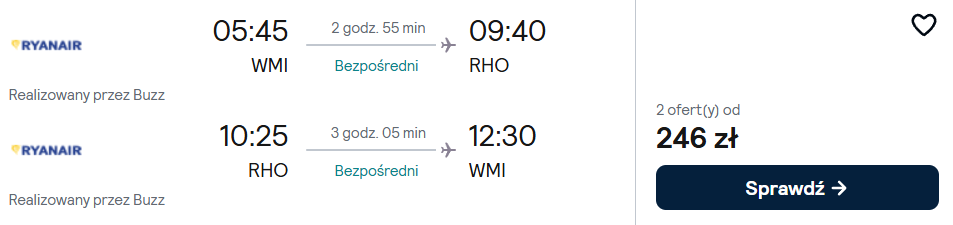 Warszawa Modlin-Rodos (12-20.04) – 246 PLN