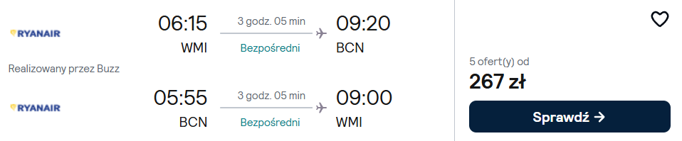 Warszawa Modlin-Barcelona (15-21.04) – 267 PLN