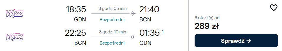 Gdańsk-Barcelona (18-21.04) – 289 PLN