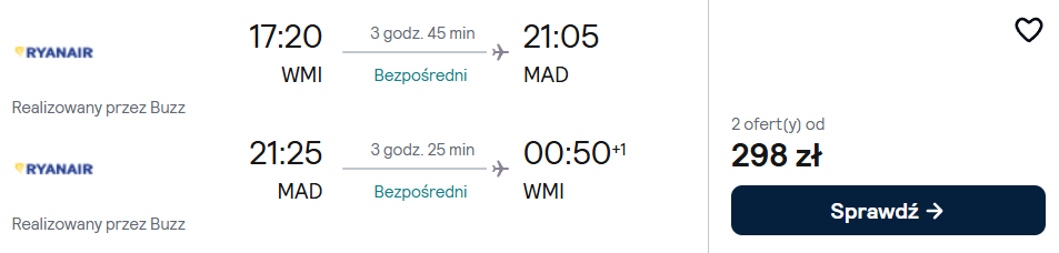Warszawa Modlin-Madryt (28.05-2.06) – 298 PLN