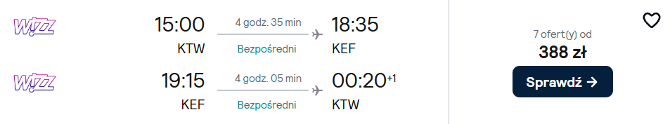 Katowice-Reykjavik (14-19.03) – 388 PLN