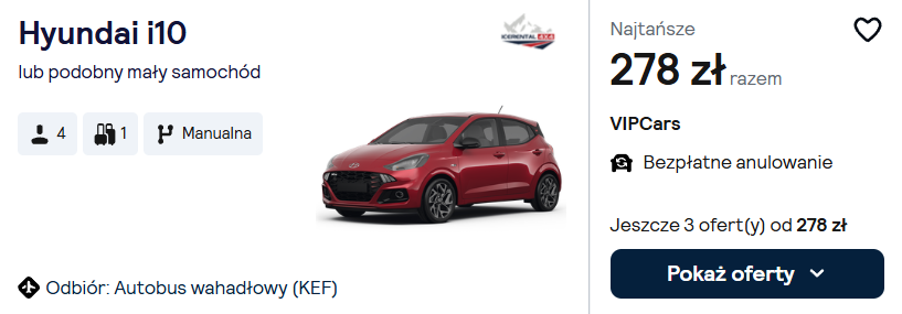 Na Islandii absolutnym musem jest wynajem samochodu, a najtaniej, bo w cenie już od 278 PLN za 4 dni zrobisz to TUTAJ.