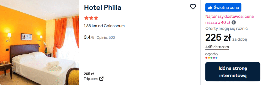 Bardzo fajny i tani 3* hotel tuż obok dworca Termini w centrum Rzymu. Tak dobrą cenę uzyskasz bukując TUTAJ.