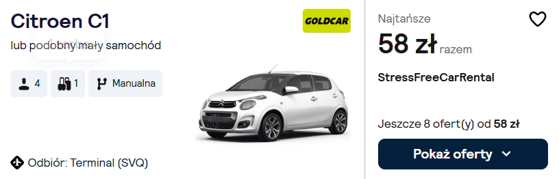 58 PLN za wynajem auta prosto na lotnisku. Dzięki tak dobrej cenie taniej wyjdzie jeżdżenie samochodem, aniżeli komunikacją publiczną. Najtaniej wynajmiesz TUTAJ.