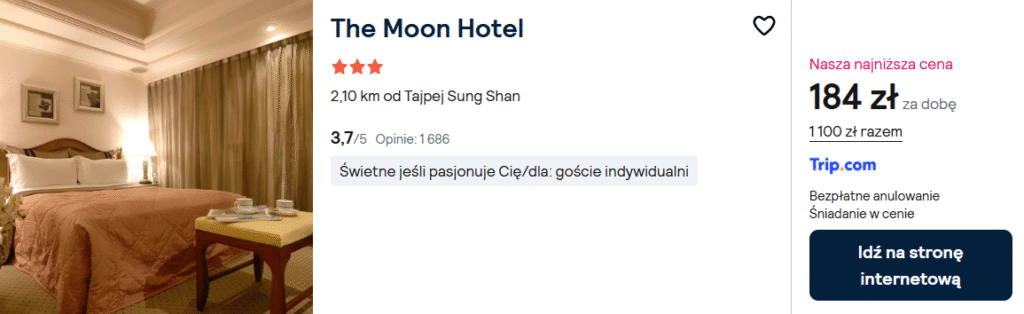 W Tajpej wynajmij TUTAJ bardzo wygodny apartament w 3* hotelu ze śniadaniami w cenie zaledwie 92 PLN/os za dobę.