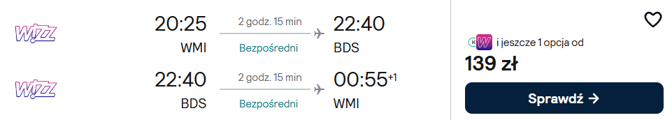 Warszawa Modlin-Brindisi (11-16.04) – 139 PLN