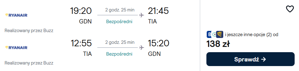 Poznań-Tirana (16-18.04) 134 PLN